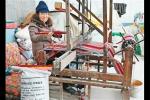 六旬农妇巧改织布机 旧毛衣变身环保床单