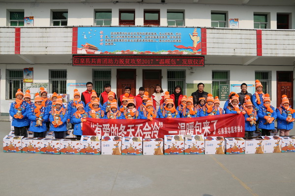 12月25日中午,团县委联合石泉县志愿者协会开展的“共青团助力脱贫攻坚2017年温暖包发放仪式”在喜河镇中心小学正式启动,为喜河镇境内70名困境儿童送去温暖。