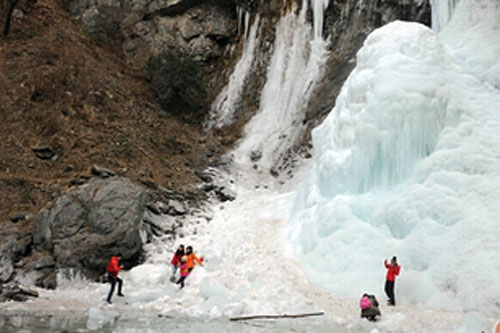 涝峪黑山现冰冻瀑布奇观