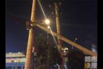 拉水车撞断电线杆 惊险"多米诺骨牌”"依次倒下